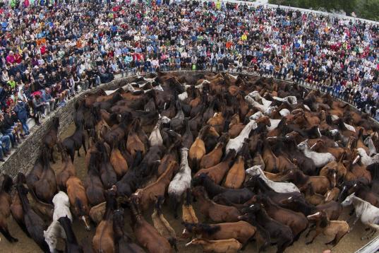 La de A Rapa das Bestas es una de las nueve fiestas de interés turístico internacional que hay en Galicia, y que, según la tradición oral y algunos estudios, se remonta al año 1567, cuando dos hermanas conocidas como 'As vellas' entregaron como ofrenda dos caballos de su propiedad a la feligresía de San Lorenzo -patrón de la parroquia- con el objetivo de librarse del mal. Justo así nacía la mítica manada de 'O Santo'.