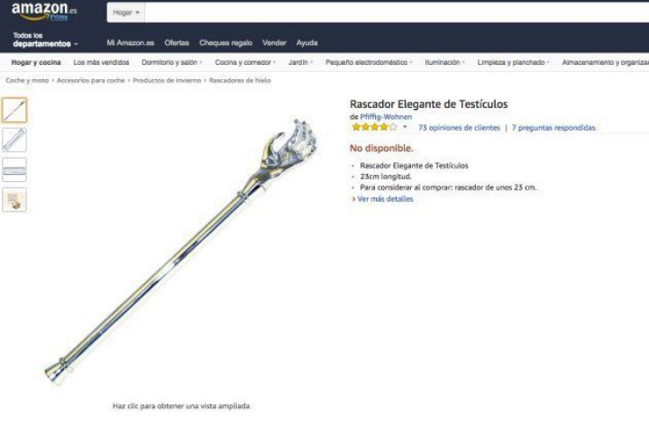 Es el Rascador Elegante de Testículos, un artilugio de 23 centímetros de longitud y apenas 272 gramos de peso que lidera la lista de los productos clasificados en la categoría "rascadores de hielo" de Amazon.