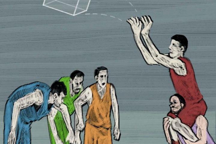 El rebote genera la posibilidad de otra oportunidad. La bola puede no entrar en el aro y volver a estar en juego. Hay que pelear bajo la canasta. Los jugadores son mediocres y solo son capaces de cometer repetidamente las mismas faltas. Generan más tiros libres y otros rebotes. No existe partido, solo un bucle estúpido de "re-votes".