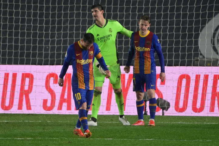 30 minutos y el Barcelona ya perdía por dos goles. Lo intentó Messi, que estuvo a punto de quitarle a Benzema el gol del partido al estrellar en el larguero un chut lanzado desde el córner poco antes del descanso.