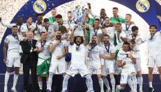 Con esta victoria, el Real Madrid levanta su primer título de la temporada y la primera en manos del capitán Karim Benzema, autor del gol que ha dado la tranquilidad al banquillo merengue en la segunda parte.