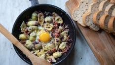 ▶️ Ingredientes (para 3-4 personas): media lombarda grande o 1 pequeña, 1 cebolla, 1 manzana golden, 2 dientes de ajo, un puñado de nueces, un puñado de pasas, 3 o 4 huevos (uno por cada comensal), ac...
