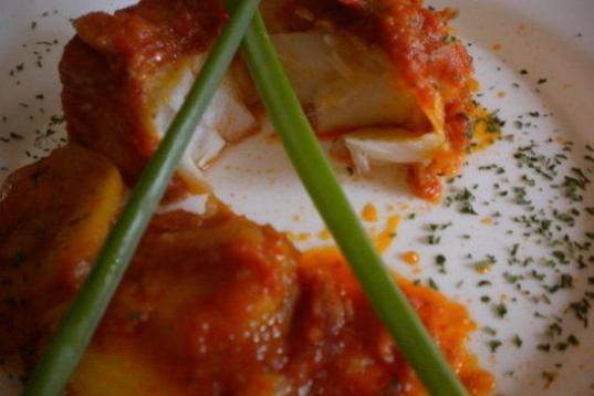 Con ajos, harina, pimentón rojo y vino blanco. Aquí puedes ver la receta.