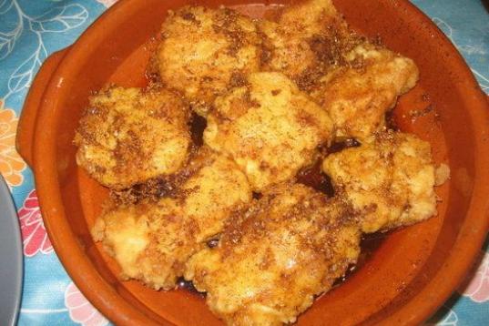 16.Una vez rebozadas, las colocamos en una fuente honda.