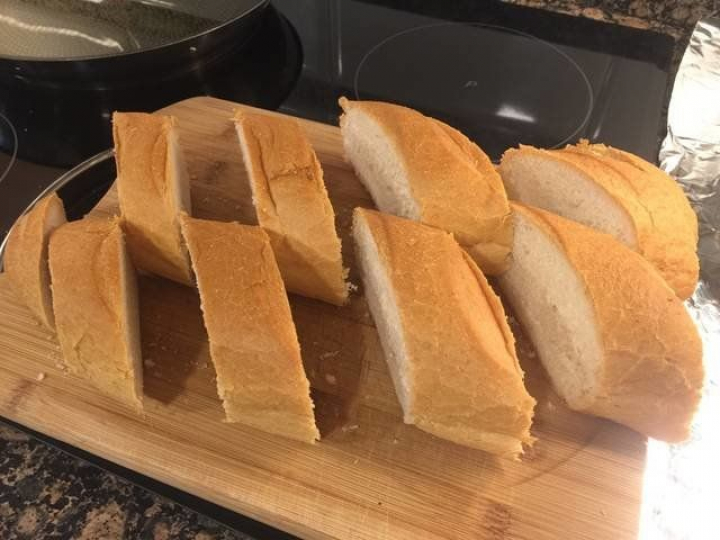 4. Partimos las rebanadas de pan de esta manera.