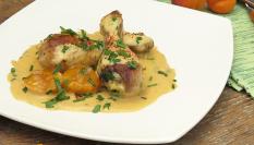 ▶️ Ingredientes: 300 g de pasta de colores, pechuga de pollo a la plancha, un ramo de apio, cerezas y almendras laminadas. Para la salsa: vinagre de manzana, azúcar, mostaza, sal, leche desnatada, mayonesa y semillas de sé...