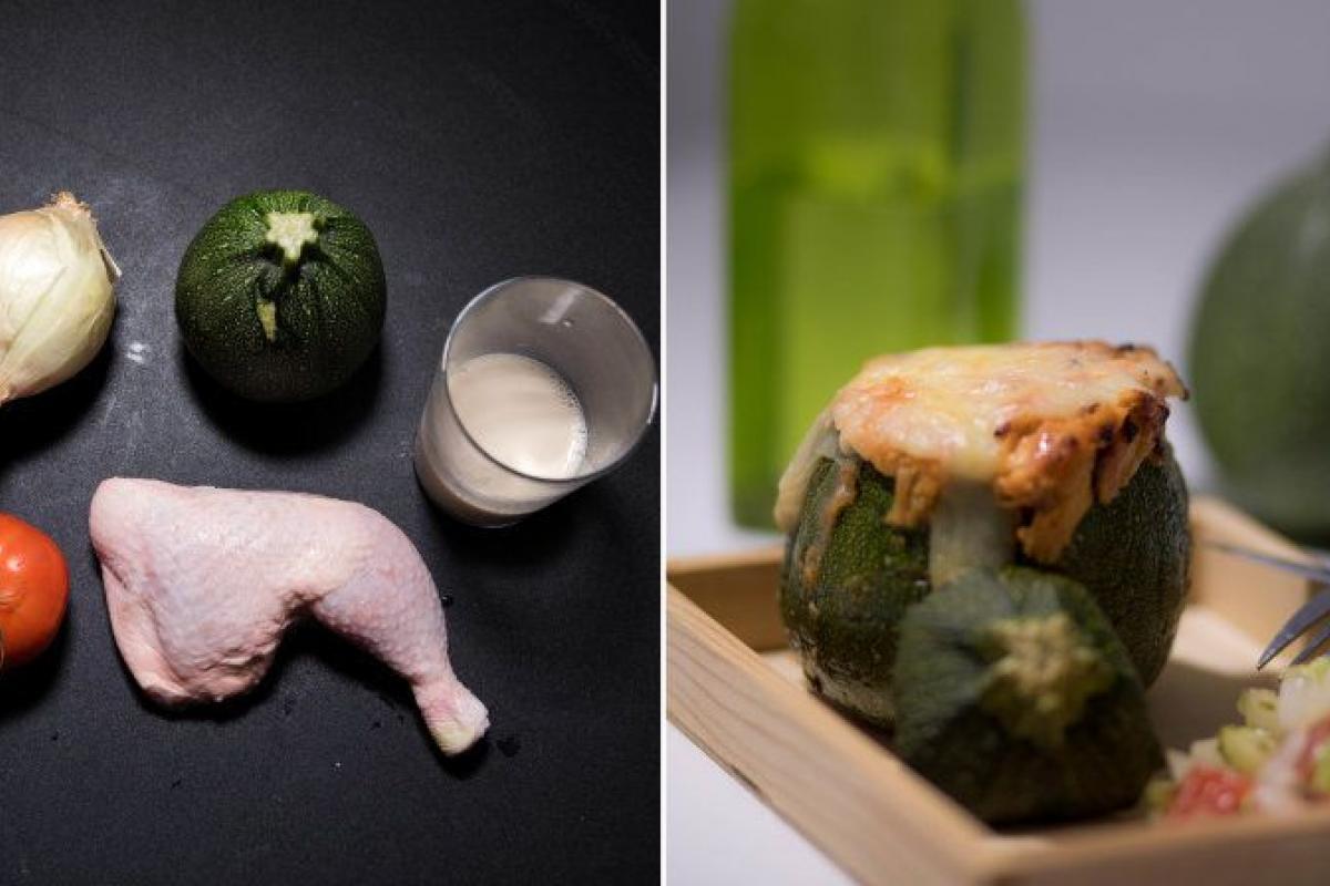 ▶️ Ingredientes (para 1 persona): 1 calabacín, 1/2 cebolla pequeña, salsa de tomate casera, 1/2 muslo o zanco de pollo, un poco de leche, sal y pimienta blanca.