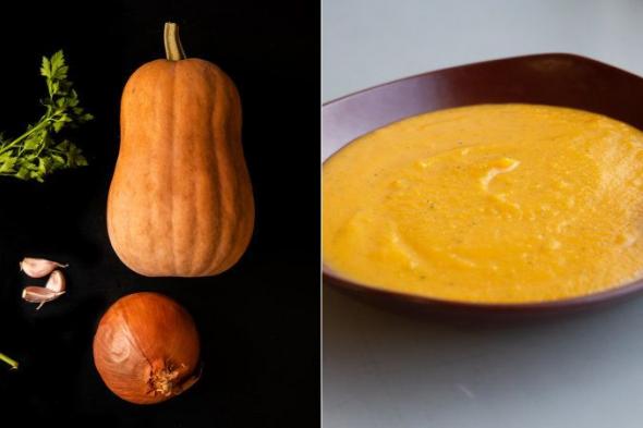 ▶️ Ingredientes (para 3 personas): media calabaza del tamaño de la de la imagen, media cebolla, un diente de ajo, una ramita de perejil, aceite de oliva, sal y pimienta negra molida