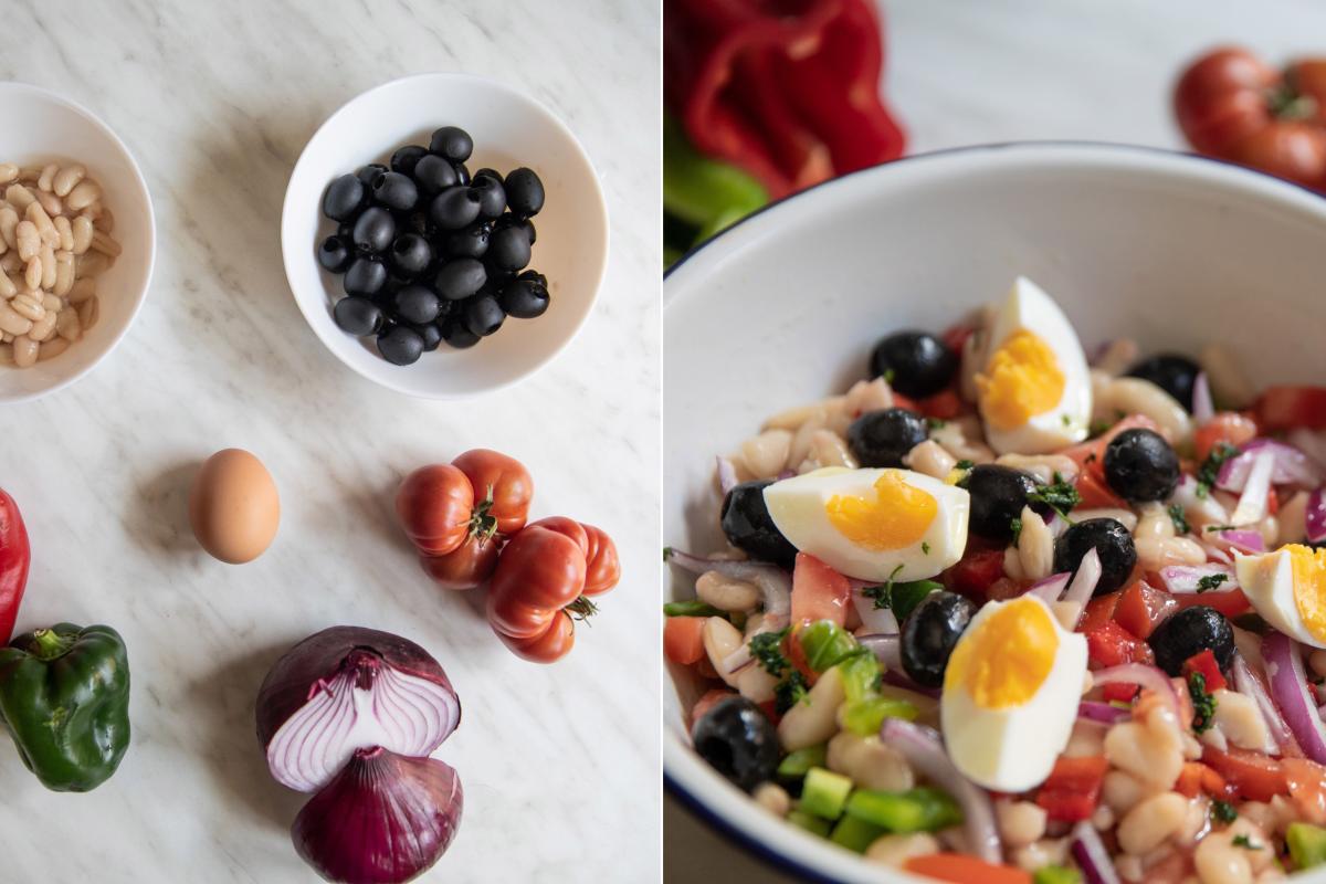 Recetas fáciles: ensalada de alubias con aceitunas y huevo