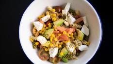 ▶️ Ingredientes (para 2 personas): 100 gramos de pasta de colores (aprox), 10 tomates cherry o uno normal, medio aguacate, un quesito de Burgos, media lata de maíz cocido, un par de lonchas de salmón ah...