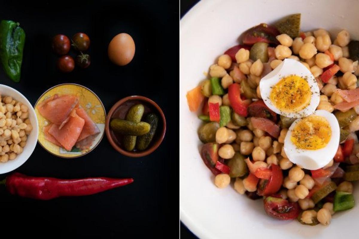 Recetas fáciles: ensalada de garbanzos, salmón ahumado y huevo