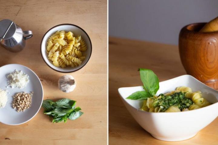▶️ Ingredientes: Pasta (mejor fresca), 1/2 diente de ajo, albahaca fresca, queso parmesano, piñones, queso pecorino (opcional), aceite de oliva y sal gorda.