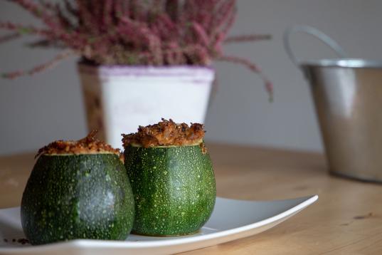 ▶️ Ingredientes (2 personas): cuatro calabacines redondos, un diente de ajo, 200 gramos de quinoa, una lata pequeña de atún, una cebolla, queso para gratinar (según gustos), un chorro de salsa de soja y semilla...
