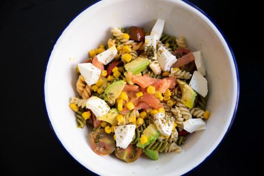 ▶️ Ingredientes (para 2 personas): 100 gramos de pasta de colores (aprox), 10 tomates cherry o uno normal, medio aguacate, un quesito de Burgos, media lata de maíz cocido, un par de lonchas de salmón ah...