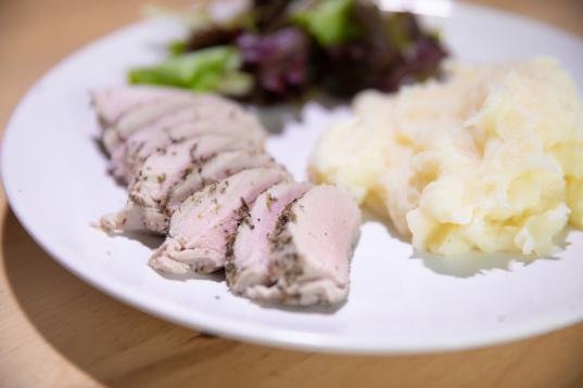 ▶️ Ingredientes (para 4 o 5 personas): 1 solomillo de cerdo, sal gorda, hierbas para adobar: provenzales, tomillo, orégano, 5 patatas, leche, mantequilla, pimienta blanca