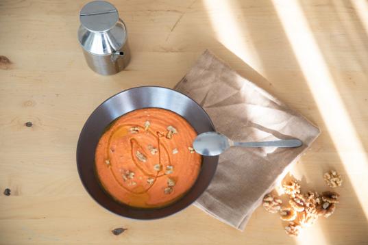 ▶️ Ingredientes (para 2-3 personas): un kilo de tomates pera, 400 gramos de calabaza, 100 gramos de pan duro, 1 diente de ajo, aceite de oliva virgen extra y sal.
