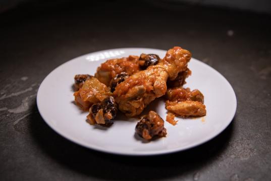 ▶️ Ingredientes (para 2 personas): cuatro muslitos de pollo (dos por persona), una cebolla, tomate triturado (dos o tres cucharadas), ciruelas pasas sin hueso (al gusto), una pera conferencia, un botellín pequeño de c...
