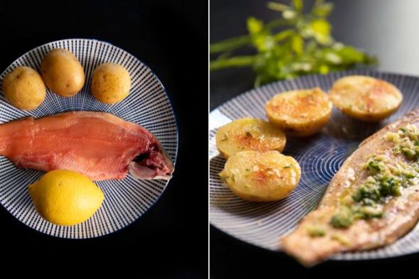 - Servir el pescado y las patatas troceadas con las especias al gusto (pimentón, orégano, zaatar...).