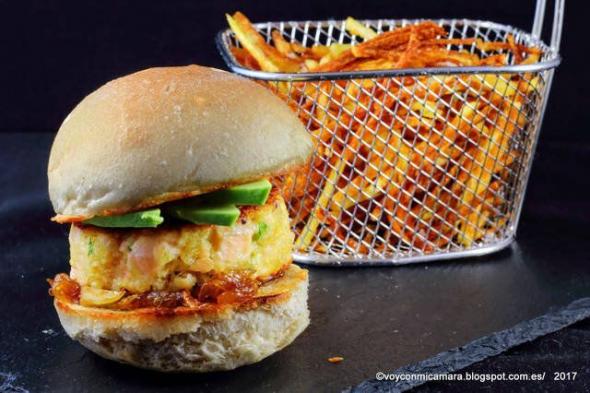 INGREDIENTES: pan para hamburguesas, salmón fresco, mayonesa, curry, perejil, cebolla, aguacate, azúcar, salsa de soja, aceite y sal. Prepárala siguiendo esta receta.