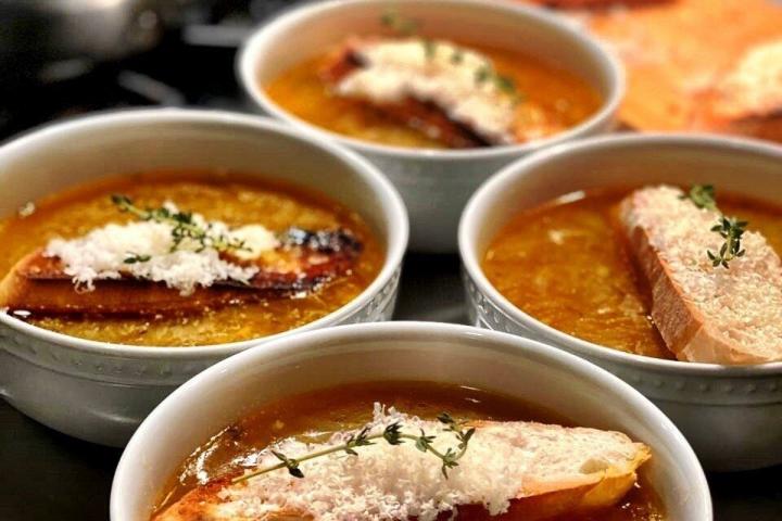 Recetas para una cuarentena más sana: sopa de cebolla con pan y queso