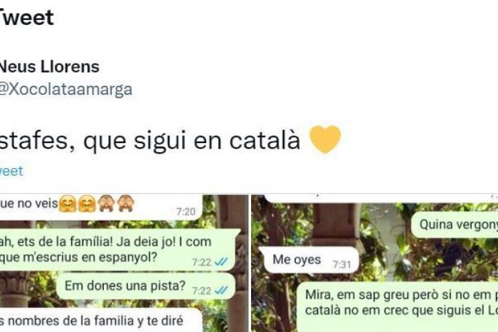 Por si fuera poco trató de justificar que no había hablado en catalán en un principio porque estaba “muy preocupado”. Una reacción brutal que la joven ha difundido en Twitter, asegurando que “si me estafas, que sea en catalán”.