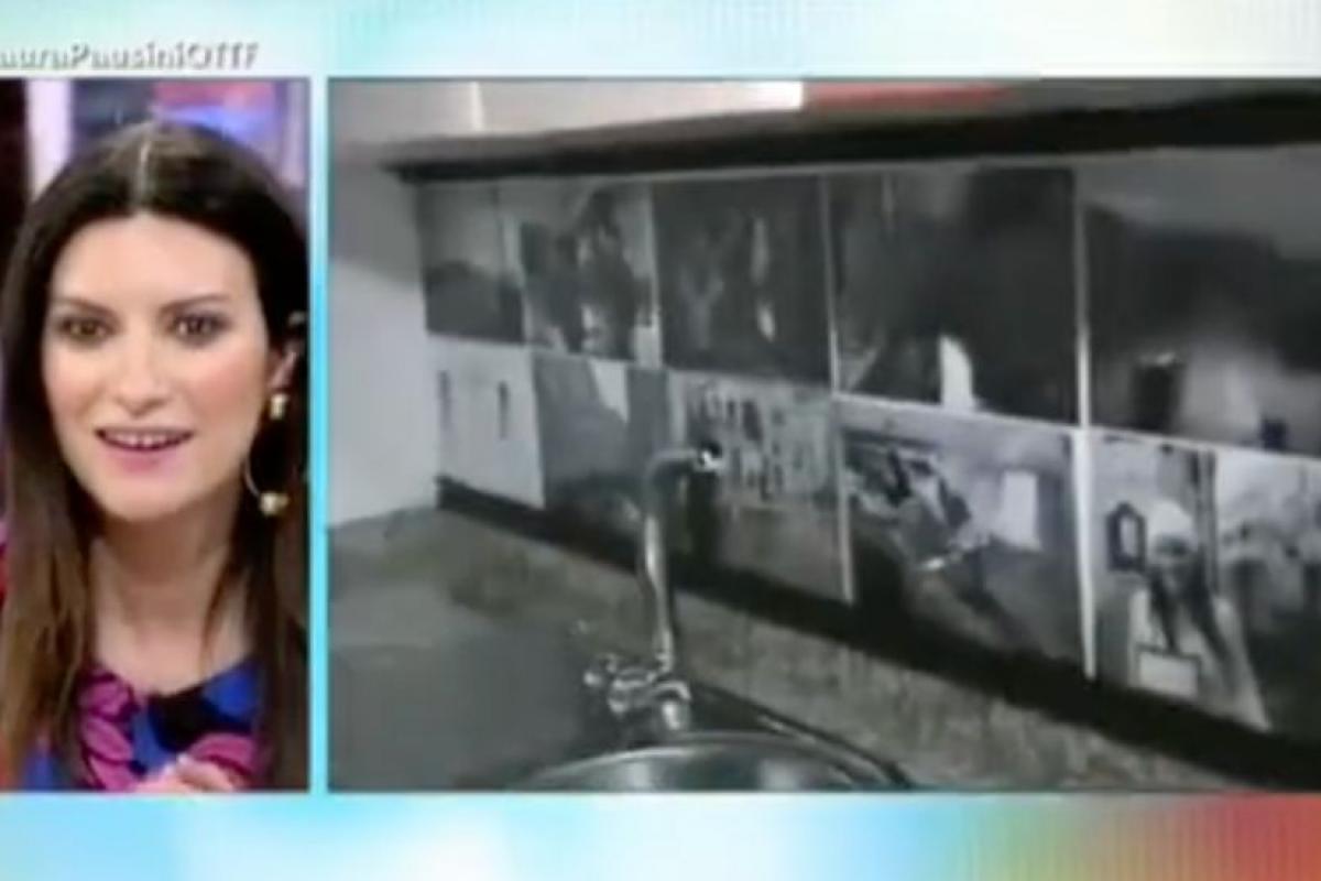 Incluso la mesa del comedor de la vivienda tiene la cara de la cantante, que no daba crédito a lo que estaba viendo. De hecho, su “zona de descanso” está repleta de pósteres de la italiana, como en otras parte de la casa, que en vez de tener los clásicos azulejos tiene fotografías de esta.