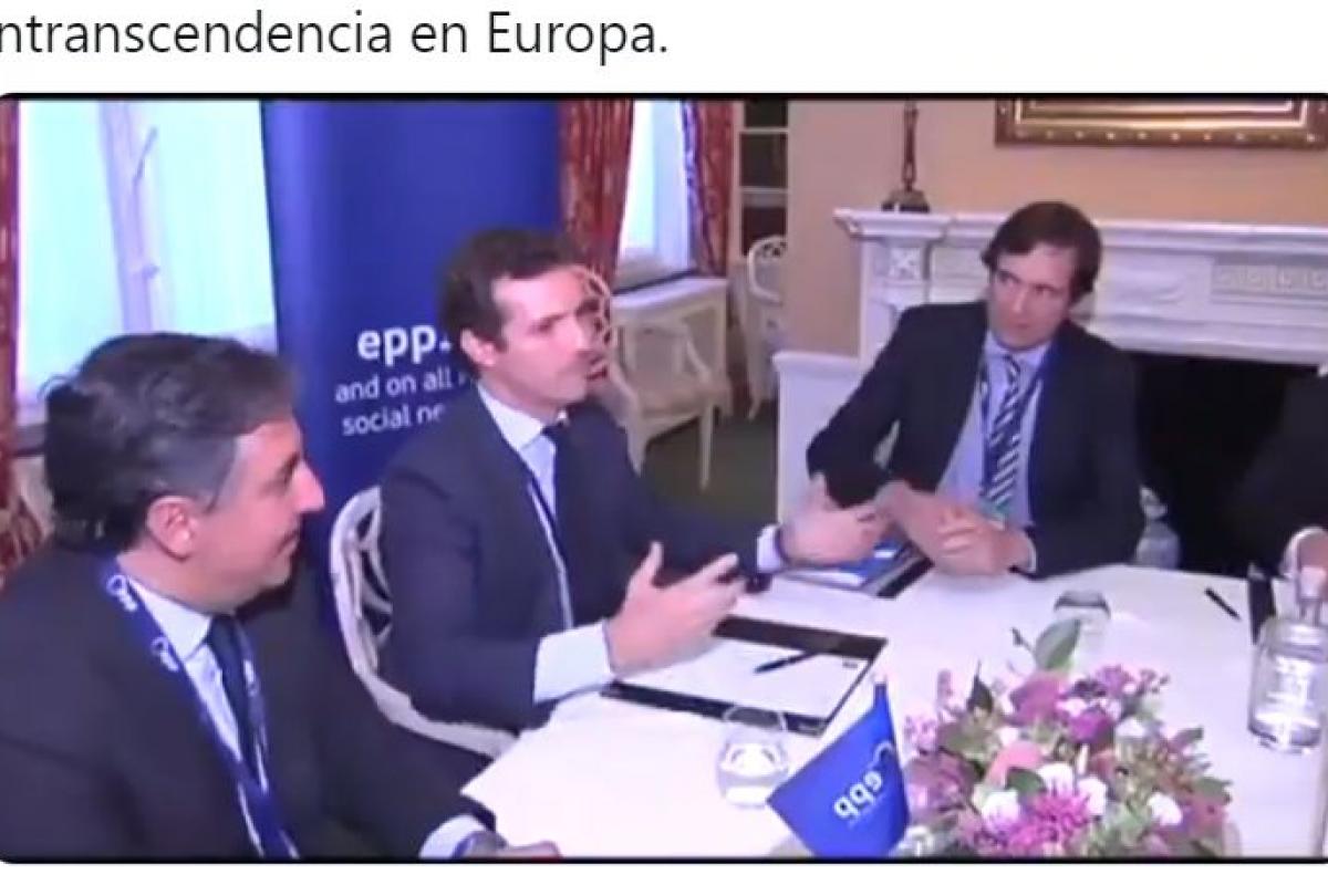 En redes, los usuarios de Twitter han recuperado un vídeo de Casado frente a Angela Merkel en una reunión de los ‘populares’ europeos donde, a la vista de los comentarios que ha generado la publicación, no sale muy bien parado.