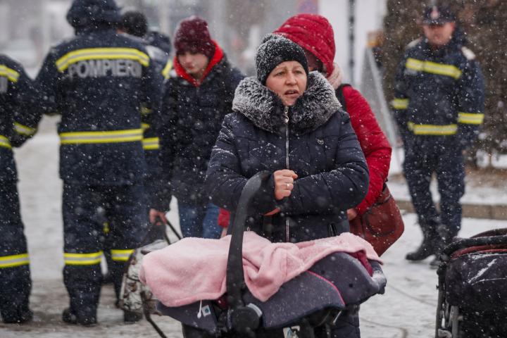 Siret (Rumanía).- El termómetro marca 7 grados bajo cero. El frío es helador y bajo un telón de fondo de copos de nieve pueden advertirse las siluetas de un flujo incesante de personas. Mujeres y niños que caminan tirando de maletas portando en brazos a los más pequeños. En los letreros de la calle puede leerse “Siret”, pero sus hogares quedan ya muy lejos.