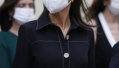 Para esta ocasión Letizia rescató el vestido negro con flores en oro de estilo oriental de Dries Van Noten que lució en la entrega de los premios de periodismo Francisco Cerecedo de 2019.