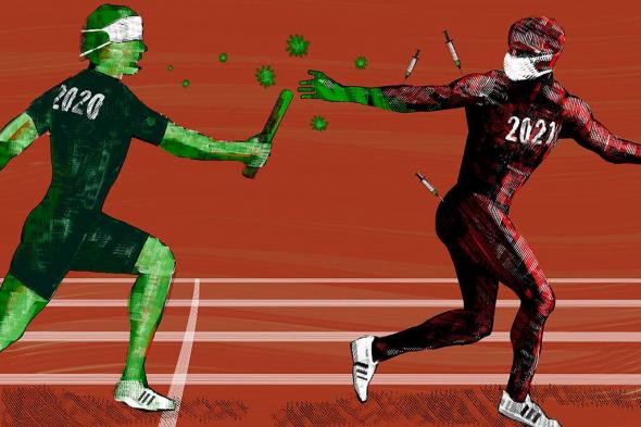 Navidades iluminadas para cerrar este año enfermo. Tercera ola. Las vacunas salvadoras, como único plan, son la lucecita de salida. Estación Esperanza. No es la meta lo que se ve, tan solo es el punto del relevo. Del 2020 al 2021 no salimos ni entramos, solo continuamos. Este año dejamos un testigo infectado en las manos del siguiente corredor. Sabiendo que la única alternativa planteada es el doping masivo para los siguientes años de carrera.