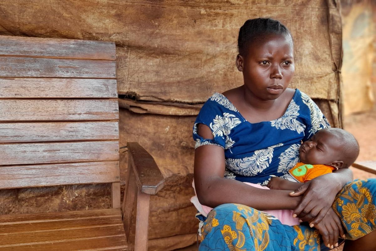 “Hui con mi marido y nuestros tres hijos en 2016. Dos más nacieron en el campo. Cuidar de ellos es complicado porque aquí las condiciones de vida son muy duras y mi marido, que es taxista, no consigue suficientes ingresos como para llegar a fin de mes. No podemos volver a Bria. Nuestra casa ya no existe y no tenemos suficiente dinero como para volver a empezar”, explica Diane, una mujer desplazada por el conflicto.