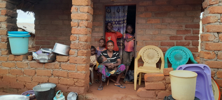 “En 2017, mi hermana y yo llegamos al campo con nuestros maridos como consecuencia de la violencia comunal. Teníamos que cuidar de 11 hijos/as y no podíamos garantizarles un futuro. Mi marido murió recientemente, así que ahora vivo con mi hermana, su marido y sus hijos. La vida en el campo es realmente dura”, cuenta Priscille acompañada de su hermana y de dos de sus hijos, todos ellos desplazados.