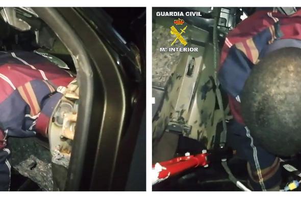 El instituto armado llevó a cabo entonces la fiscalización del vehículo mediante un equipo detector de latidos, que dio dos veces positivo, lo que conllevó a un registro exhaustivo que permitió hallar un doble fondo practicado en el salpicadero, en cuyo interior había un migrante adulto de origen subsahariano en posición fetal y totalmente inmóvil.