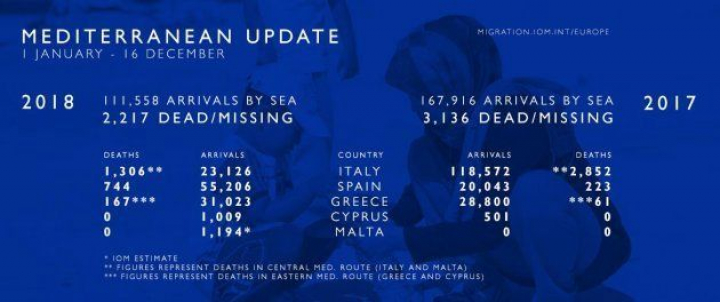 Estos son los datos de llegadas y muertes vía Mar Mediterráneo en lo que va de año, según la Organización Internacional para las Migraciones de las Naciones Unidas.