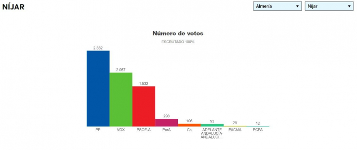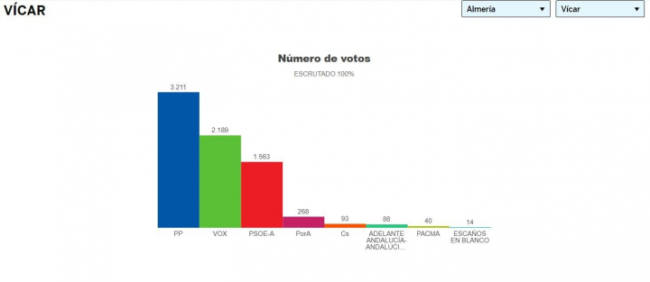 Sin embargo, otra de las curiosidades que dejan los resultados del 19-J es la caída de la formación de Abascal en El Ejido cediendo terreno a los populares.
