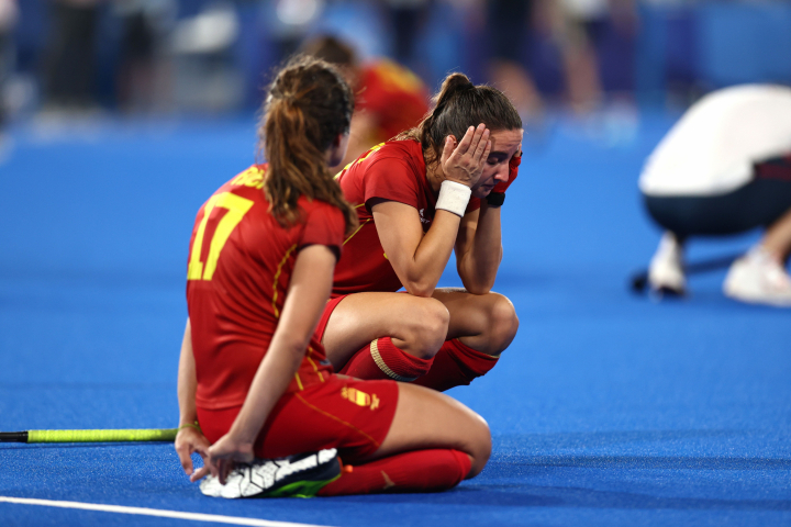 La selección española en cuartos de final ante Reino Unido en los lanzamientos de penalti tras empatar 2-2 en el tiempo reglamentario. DIPLOMA.