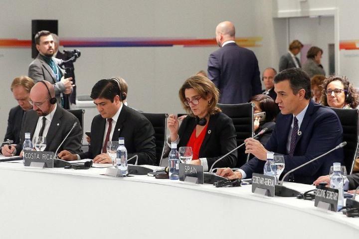 El presidente del Gobierno español, Pedro Sánchez durante su intervención en la ceremonia de apertura de la 25 Conferencia de las Partes del Convenio Marco de Naciones Unidas sobre Cambio Climático (COP).
