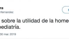 Entre las entidades que presumieron de este estudio, realizado con ratas de laboratorio, está la Asociación Española de Médicos Integrativos. “Se hace cuesta arriba decir que la homeopatía es placebo”, escribió en su perfil de Twitter tres días después de la publicación del documento.