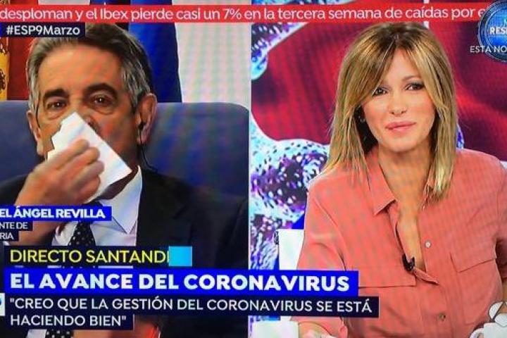 Durante la entrevista, el político cántabro se saltó las normas de higiene que se están recomendando y en escasos segundos se sorbió la nariz, estornudó, se sonó y volvió a estornudar. El propio Revilla dijo que no era coronavirus y que se trataba de “un poco de alergia a la humedad”.