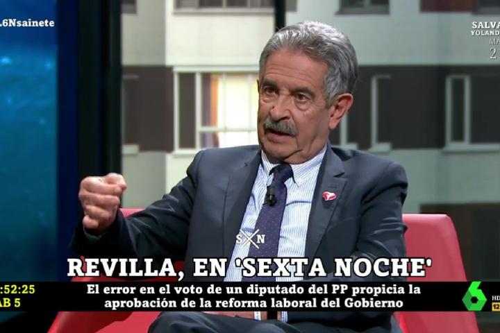 El presidente de Cantabria, Miguel Ángel Revilla, mostró este sábado en laSexta Noche su enfado contra el PP por votar en contra de la reforma laboral presentada por el Gobierno y aprobada por un solo voto.