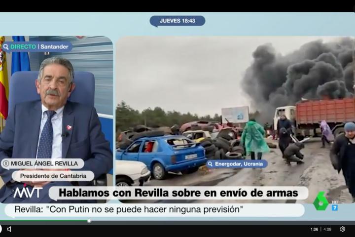 Los presentadores Cristina Pardo e Iñaki López le han preguntado al presidente de Cantabria “a dónde cree que vamos” con respecto a la guerra. Ha afirmado Revilla que “con este personaje [Vladimir Putin] no se puede hacer ninguna predicción”.
