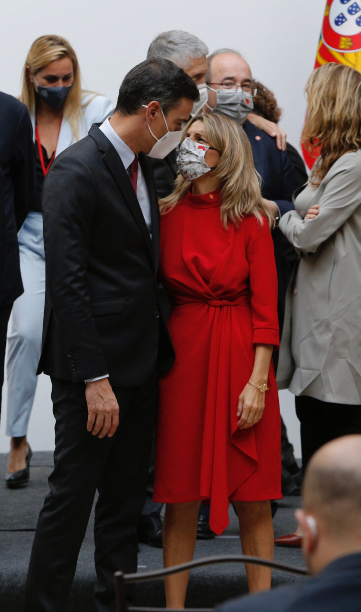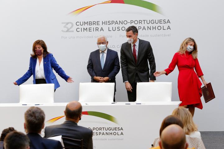 Tras alcanzar un acuerdo sobre la metodología de trabajo, el Gobierno quiso mostrar una imagen de unidad interna con las dos vicepresidentas caminando juntas y bromeando antes de la cumbre hispano-lusa.