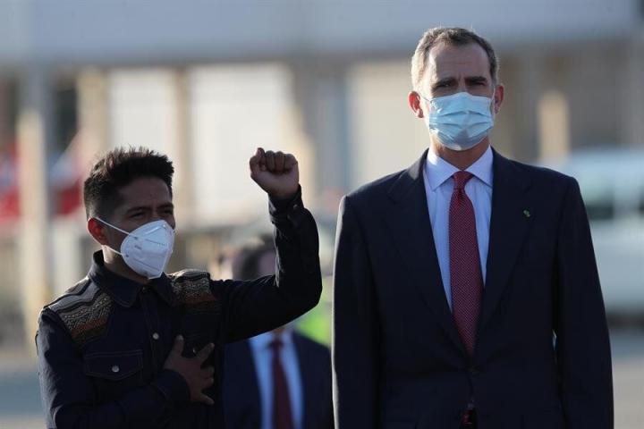 Es una de las fotos más compartidas de las últimas horas en redes sociales. Felipe VI ha viajado hasta Bolivia junto a una delegación del Gobierno de España encabezada por el vicepresidente Pablo Iglesias y por la ministra de Exteriores, Arancha González Laya, para asistir a la investidura del nuevo presidente boliviano, Luis Arce.