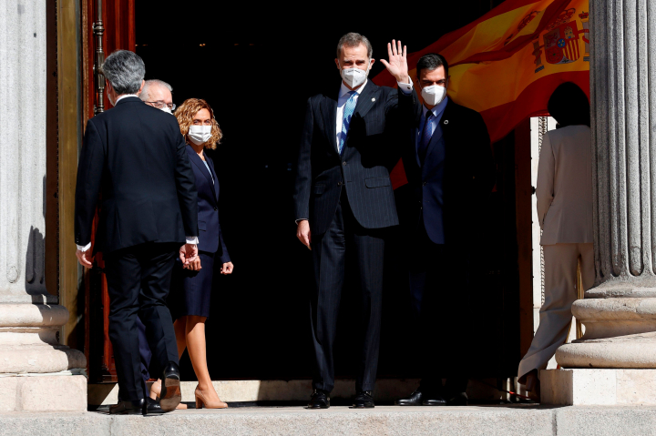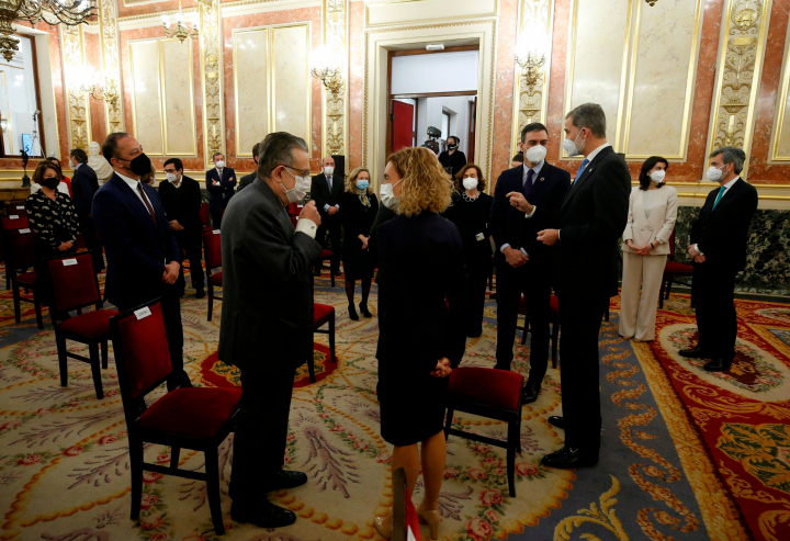 Un acto en formato reducido celebrado en el Salón de los Pasos Perdidos y marcado también por la pandemia del coronavirus. Junto a Felipe VI han estado el presidente del Gobierno, Pedro Sánchez, sus vicepresidentes, el líder del PP, Pablo Casado y dos de los ‘padres’ de la Constitución (Miguel Herrero y Rodríguez de Miñón y Miquel Roca).