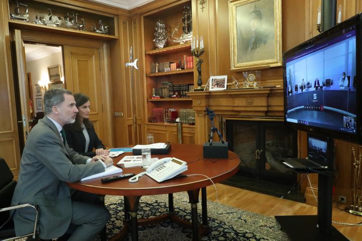 Los reyes mantienen en los últimos días reuniones con representantes de diferentes sectores para tratar la crisis del coronavirus. Lo hacen siempre a través de videoconferencia para mantener el confinamiento y reducir el riesgo de contagio.