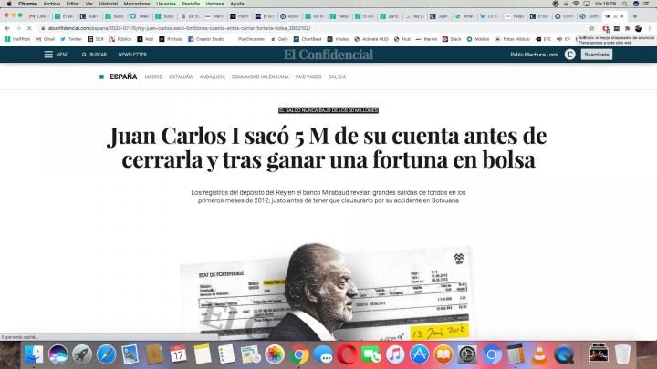El Confidencial volvía a publicar una importante información sobre el rey Juan Carlos al asegurar que, antes de cerrar su cuenta en Suiza, el ahora emérito retiró 5 millones de euros.