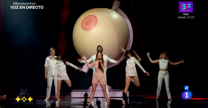 La canción, calificada como un himno feminista, incluye versos como “Paremos la ciudad / sacando un pecho fuera al puro estilo Delacroix” o “No sé por qué dan tanto miedo nuestras tetas / sin ellas no habría humanidad ni habría belleza”. En las semanas previas al concurso se había afirmado que TVE le iba a construir una “teta gigante” para la actuación, pero no había ni certezas ni detalles.