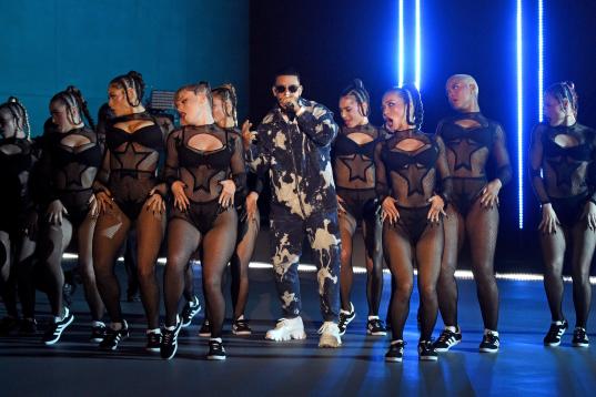 La nostalgia viene de la mano de Daddy Yankee, que no es el único latino del desfile. Ricky Martin también tiene su hueco subido a un altillo con un batín de seda mientras las modelos visten las prendas diseñadas por Rihanna. Mención especial a Emily Ratajkowski desfilando al ritmo de Un pasito palante María.