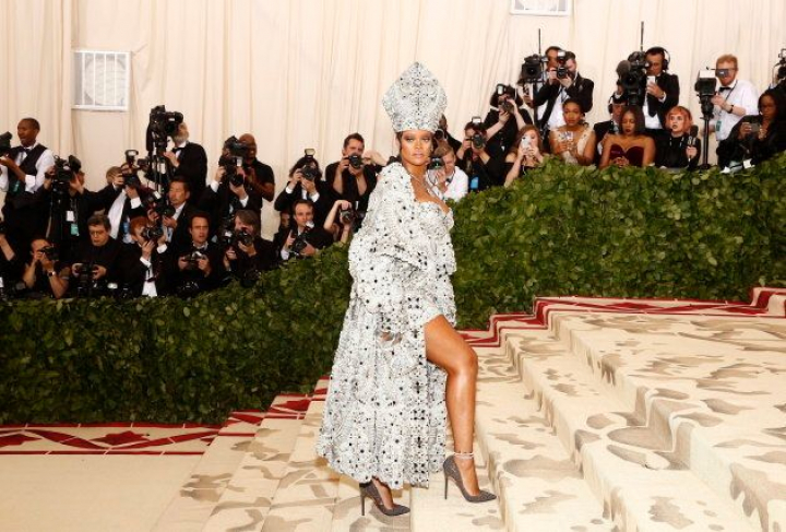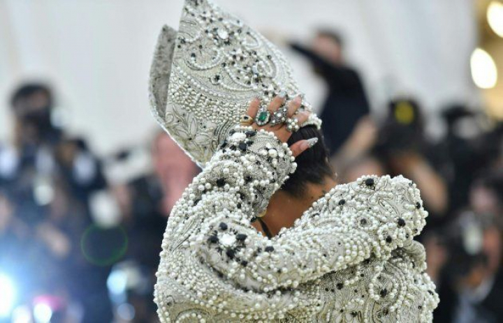 En 2015 reventó Twitter con su comentadísimo abrigo amarillo de Guo Pei y el año pasado apostó todo al rosa con un vestido imposible de Comme des Garçons que acertaba de pleno con la temática de la Gala del Museo Metropolitano de Nueva York (MET), que buscaba rendir homenaje a esta firma capitaneada por Rei Kawakubo. La muestra de este año, Cuerpos celestiales: la moda y la imaginación católica, buscaba estudiar la influencia de la iglesia católica en la moda y Rihanna, una vez, más hizo los deberes.