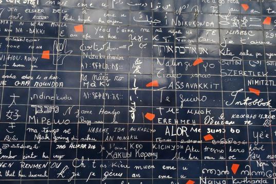 Apasionados del amor, sed bienvenidos. Este es vuestro lugar. En este muro se presentan 311 formas de decir 'te quiero' en 250 idiomas distintos. Una obra creada por Frédéric Baron y Claire Kito con el fin de mostrar un símb...